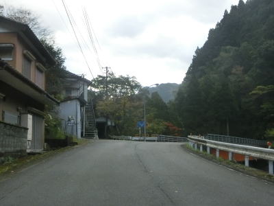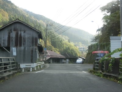 | 廃村になったと思われる鍵掛集落に至る道路との交差点を通過して穴吹川に沿って大きく左にカーブする。沿線には比較的多くの家屋が建っているが、廃屋もしくは定住者がいない家屋が目立つ。 | ||