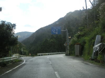 | 譲り車線は設置されていないが、大型車や遅い車は後続車に譲るようにお願いする看板が立てられている。法面防護工事で時間帯別通行止規制が敷かれている場所があったが、工事が始まる前の時間だったため待つ事なく通過できた。宮内集落に入った所で徳島r255交差点を通過する。 | ||