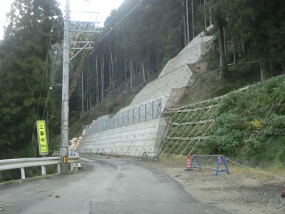 | 徳島r250交差点のすぐ先では法面改良工事が行われており、それに伴って拡幅も行われていた。もっとも順序が逆で、拡幅するために法面を改良した可能性もある。1.8〜2車線の道路を走っていると国の重要文化財の三木家に向かう市道との交差点を通過する。案内標識があるため素通りしてしまう事はないだろうが、旧穴吹側から来ていると鋭角に右折しなければならなので車両によっては一度に曲がりきれないかもしれない。 | ||
