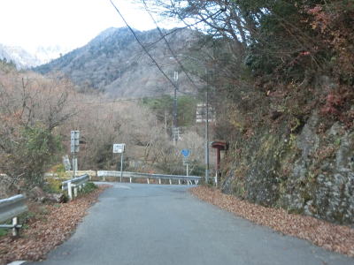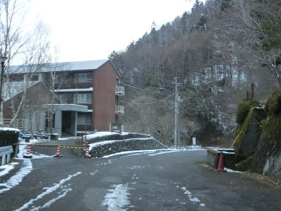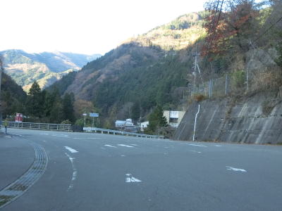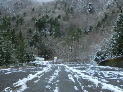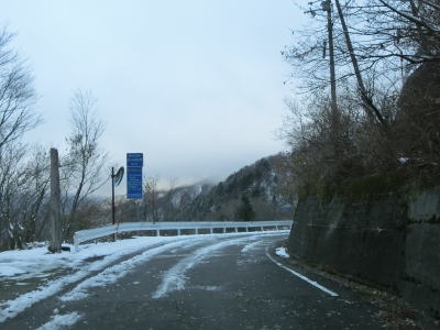 | 見ノ越区間は国道走行以外を含めて何回も通行しているが、積雪している状態は初めてである。交通量は少ないだろうが轍部分は積もっていなかったが、気温が低かったため凍結している場所もありスタッドレスタイヤでなければ走れなかっただろう。なお、見ノ越に来るまでに走行したR438の標高1200m超の区間の方が積雪が多かった事を付け加えておく。 R438・R439交差点から約1.4kmで道路の両側に駐車場がある。見ノ越付近の駐車場が満車であればここに停めるという方法もある。車道を走れば1.4kmだが徒歩であればショートカットできるためもう少し短くて済む。その後、きれいな3階建ての建物の前を通過する。徳島発祥の某社の保養施設でつるぎ山荘という。 |