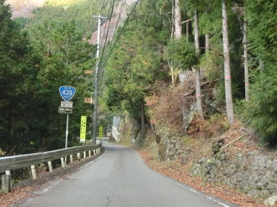 | R439の79キロポストを過ぎると道幅が1.5〜1.8車線とやや狭くなる。小刻みなカーブが多く見通しは悪いが、勾配は緩やかである。また、祖谷川の右岸を走っているが高低差gあるため川の水は全く見えない。 | ||