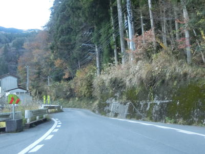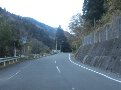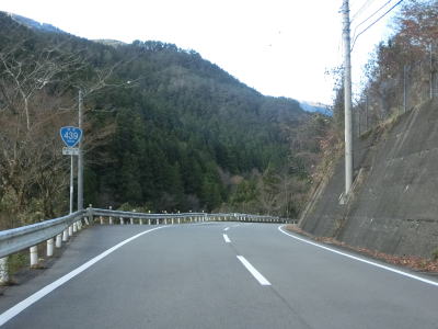 | 名頃集落を通し抜けてからも1.0〜1.5車線幅の狭路が続いている。祖谷川に沿っているが川面が見える場所はほとんどない。交通量は少ないが剣山への西側の出入口のルートに当たるため紅葉期は交通量が増える傾向にある。 | ||