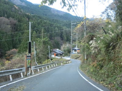 | 187.知命橋の北詰を通る | 188.久保陰集落にも対向車お知らせ装置がある | 189.対向車お知らせ区間外も狭い |
