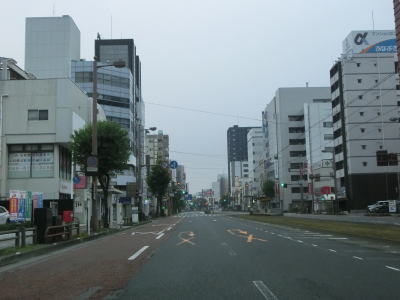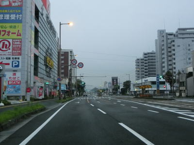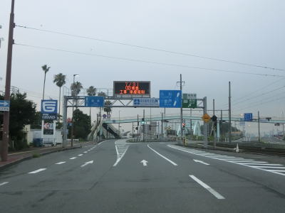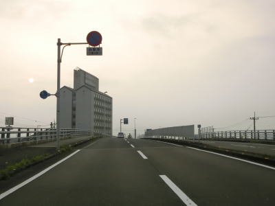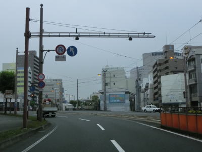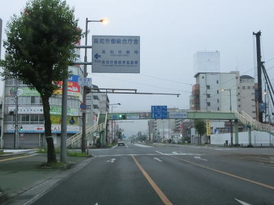 | 知寄町3交差点を過ぎてすぐに新葛島橋で国分川を渡る。上流側にはとさでん交通の国分川橋梁とR195の葛島橋が架けられている。橋を渡り終えると緩やかな左カーブを曲がりながら緩やかな勾配を下る。とさでんは交通はR195沿いとなるため通常の片側2車線道路に変わる。 高知r44・r376高須新町1交差点を通過するが、左折してr44を北上すれば高知道の高知ICへ、右折してr374を南下すれば高知東部道の高知南ICに行く事ができる。その2つのインターチェンジを繋ぐ高知東部道が2020年度の開通を目指して建設中であり、交差点の上を高架橋が横切っている。 早朝のため比較的交通量の少ない片側2車線道路を走っていると緩やかな左カーブを曲がり、程なくして高知r243介良通り交差点を通過する。r243はR493(実質R55)の南側を並走している県道である。 |