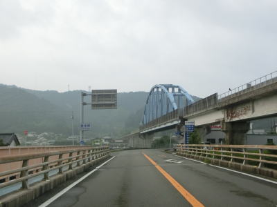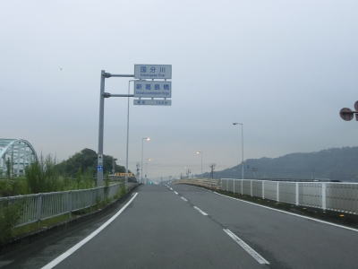 | 田村交差点を過ぎてすぐに高知r13交差点を通過する。右折すると高知東部道の高知龍馬空港ICに行く事ができ、そのインターチェンジの名称からも分かるように高知龍馬空港に近い。案内標識に「安芸方面へは行けません」となっているが、高知龍馬空港ICより東の区間は走行日時点では供用されていない。 r13交差点を過ぎてすぐに側道が分岐するが、側道の先の道路はr13の旧道に当たる。新物部川橋で旧道と物部川の上を通過する。物部川はおおむね市境となっているため橋を渡ると香南市に入る。 |