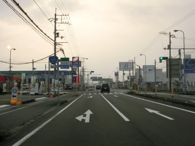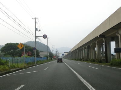 | 片側2車線道路を快走していると高知r248交差点を通過する。その後はごく緩やかな上り勾配となるが、カーブは緩やかで走りにくさは一切感じない。高天ヶ原山の南の山裾を走るが、そのような場所にも沿線に商業施設がある。 | ||
