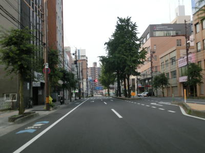 | 松山市役所の西のその名も松山市役所前交差点がR494の起点である。案内標識にはR11とR56しか表記されていないが、R11・R33・R56・R317・R379・R440・R494の合計7本もの国道が交差している。R494はR11・R33・R317・R379・R440と重複しながら路面電車の伊予電鉄とともに北上して市役所前電停を通過する。松山城を見ながら片側2車線道路を200m弱進むと愛媛県庁の南西を右に直角にカーブする。伊予鉄道も同様にカーブしている。 | ||