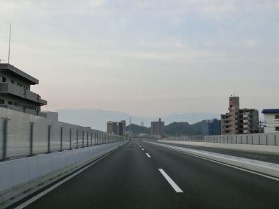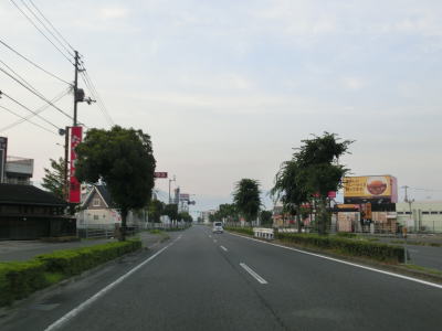 | 小坂交差点をオーバーパスする高架橋は小坂交差点だけでなく市道や伊予鉄道の横河原線もオーバーパスしている。緩やかに下って高架橋が終わると平坦な片側2車線道路を走る。沿線には商業施設も多いが市の中心部から離れているためごちゃごちゃ感は薄れている。左カーブを曲がると進行方角がほぼ真東となり、愛媛r40現道との来住町交差点、r40バイパスとの久米窪田交差点を相次いで通過する。久米窪田交差点を過ぎて少し走ると右にカーブして進行方角が南東に戻る。 | ||