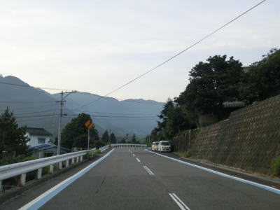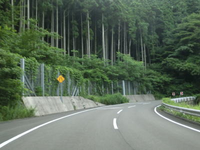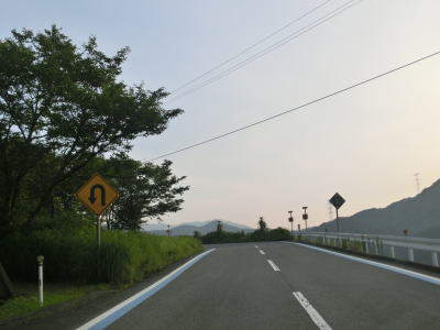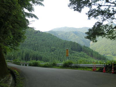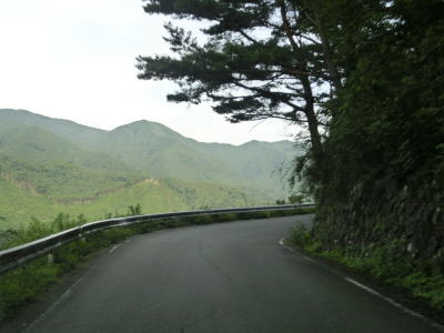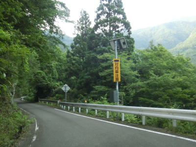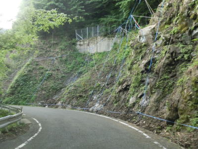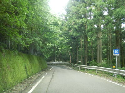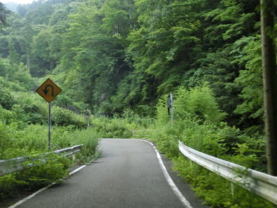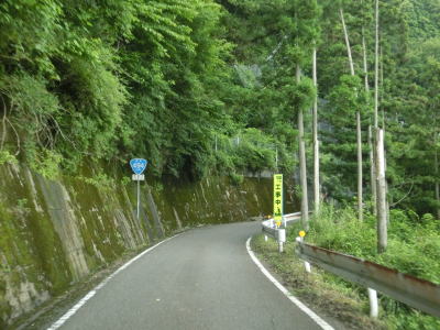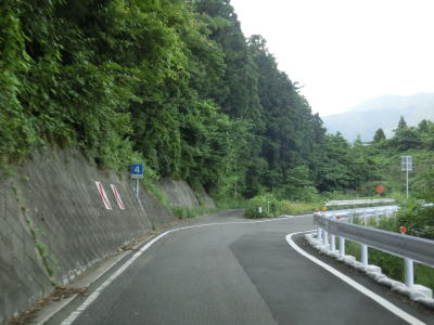 | 交通量の少ない山岳狭路をひたすら走る。小刻みなカーブが連続している中にヘアピンカーブもあり見通しは良くない。工事している場所を通過するが、道路改良ではなく落石対策である。道幅が狭いため、この工事が行われている場合も時間帯通行止規制が敷かれる可能性がある。 | ||