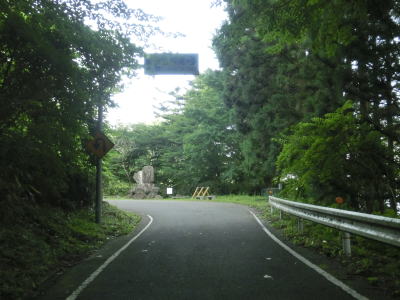 | 唐岬の滝付近のヘアピンカーブ以降は勾配がややきつくなる。と言っても車であれば問題になる程の急勾配ではない。自転車であればかなりきつく感じるのではなかろうか。こんな場所を走る自転車がいるのかと思うかもしれないが、路面には自転車向けに黒森峠までの距離を表示しているので脚力に自信のある自転車乗りが挑戦しているのかもしれない。ちなみにこの日は車、自転車ともに1台とも遭遇していない。 | ||