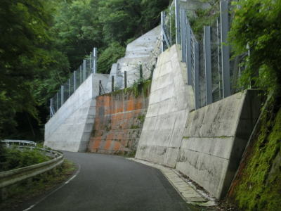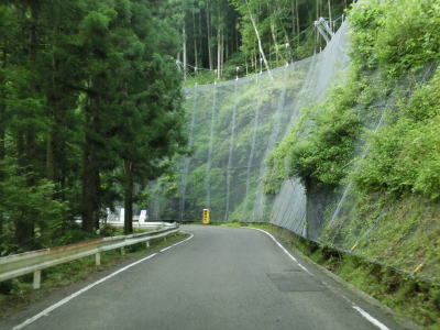 | 60.元の擁壁を広げたと思われる | 61.峠の手前にもヘアピンカーブあり | 62.落石防止ネット |