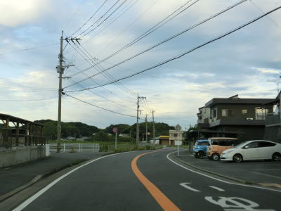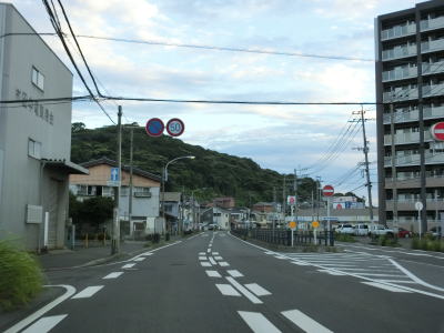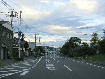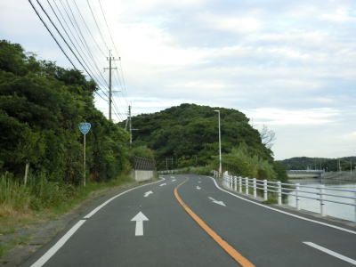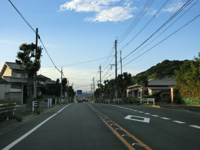 | 逆水川流域を西に向かって走っており、早朝という事もあって交通量は非常に少ない。頻繁にアップダウンがあるものの勾配は緩やかで走りにくく感じる程ではない。大きく左にカーブして遠見ノ鼻の根元を通ると福岡r274交差点を通過する。 | ||