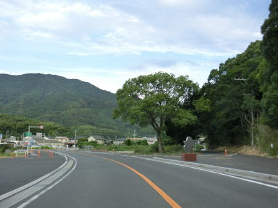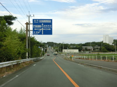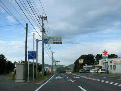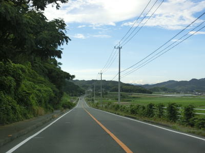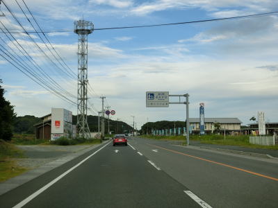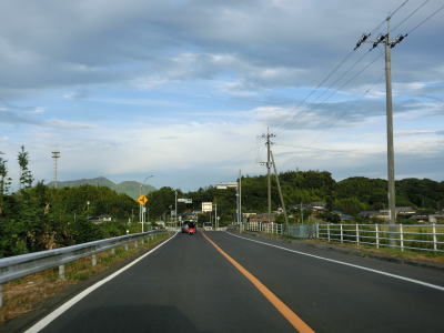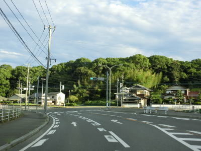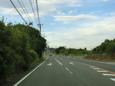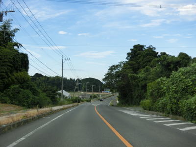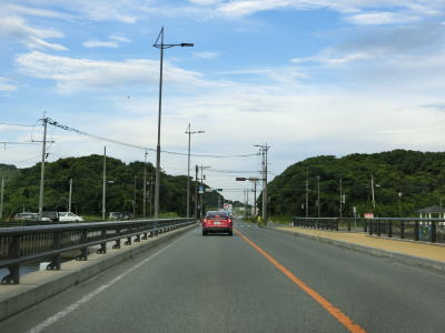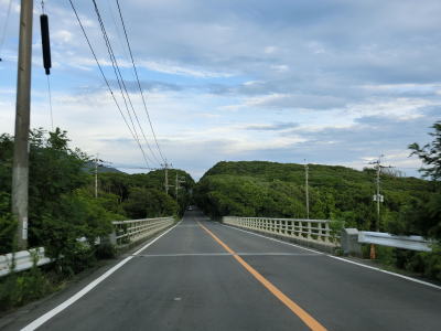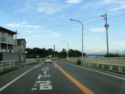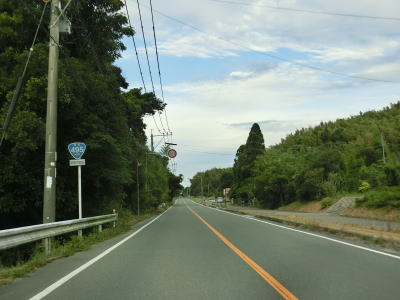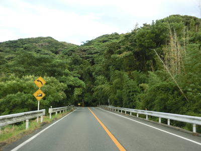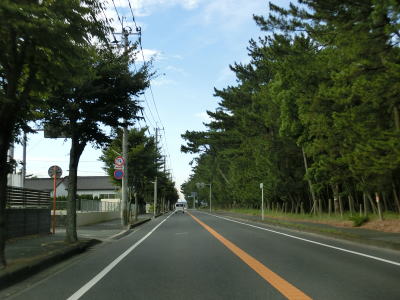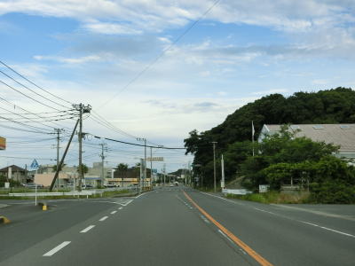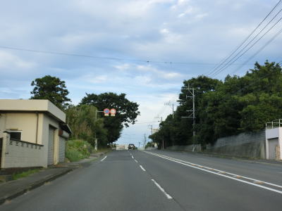 | 交通量の少ない2車線道路を快走していると汐入川橋を渡る。道路の両側には多くの樹木があるが、海岸に比較的近い場所を走っている。大きく左にカーブすると海岸から離れて内陸へと進む。 | ||