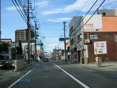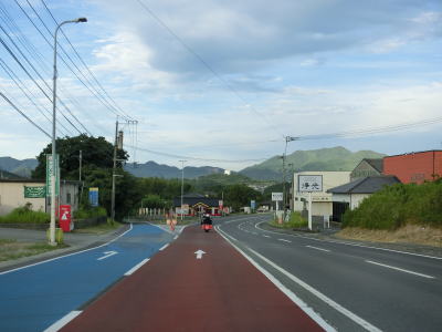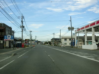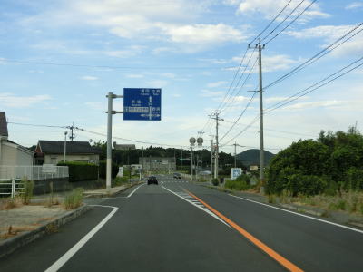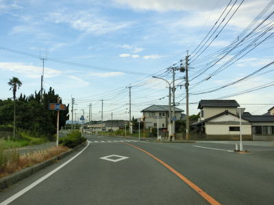 | 交通量の少ない2車線道路を快走していると旧津屋崎町の中心部に近付くと沿線の建物が増えいき、津屋崎小学校付近からは4車線道路になり、福岡r502宮ノ元交差点を通過する。 | ||