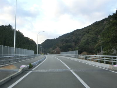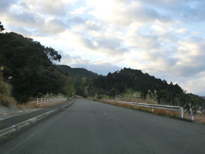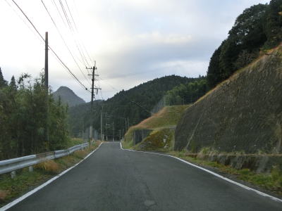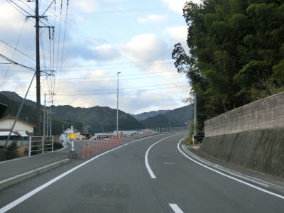 | 伊良原大橋から少し走ると中村集落を通り抜ける。集落内に伊良原小中学校があるが校舎が新しい事から移転してきたものと思われる。藤の宮高木神社の前を過ぎた先で旧道との交差点を通過する。ウオッちずでは国道扱いされているが、伊良原小中学校の手前で途切れており通り抜けはできない。旧道と合流してすぐに狭路区間が始まるが、拡幅工事が行われていたので2車線区間が伸びるのは時間の問題だろう。 | ||