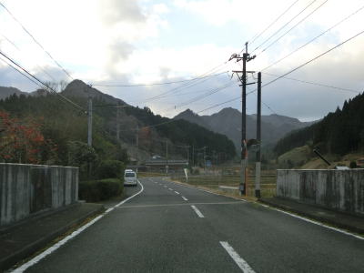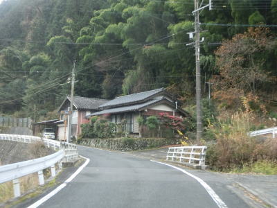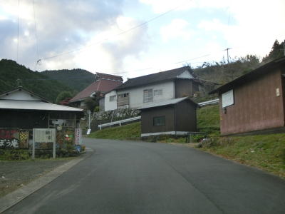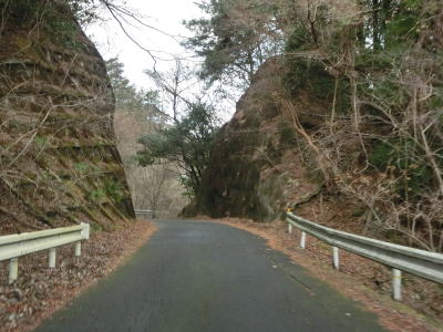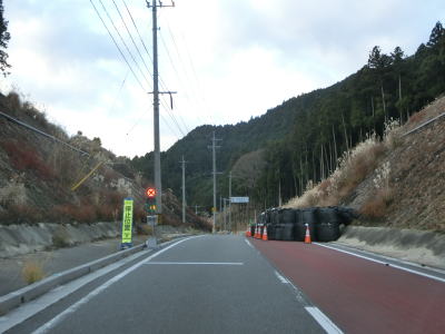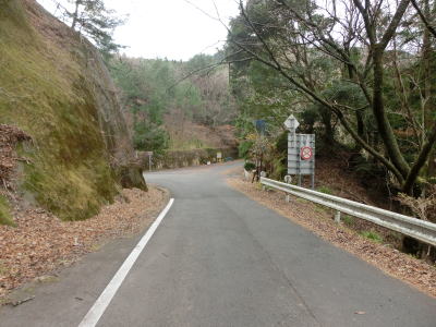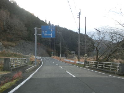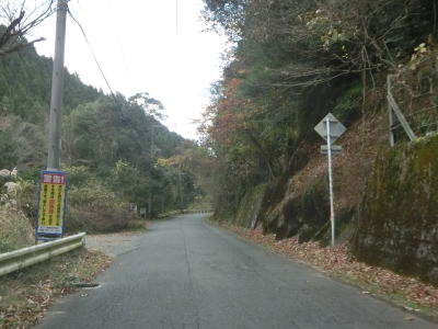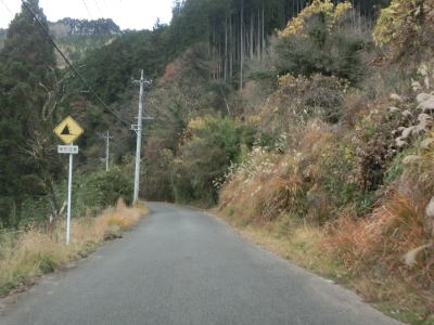 | センターラインが復活して2車線道路に戻るも荒瀬橋付近から1.8車線幅になってしまう。橋の直後の左急カーブを曲がると勾配が若干急になる。集落内ではあるがカーブも多くなる。 | ||
