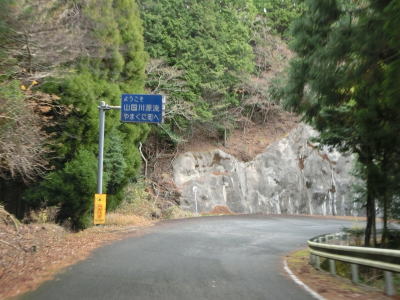 | R500交差点の直後に大分県中津市に入り、緩やかな勾配を下る。峠の直後はカーブも緩やかで走りにくさはさほど感じない。山国川の源流である事をアピールしているが、河川名よりも耶馬渓という景勝地として知られているのではなかろうか。 | ||
