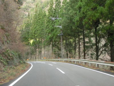 | 劒木橋を渡ると定住者が確実にいると思われる桑原集落や中畑集落を通り抜ける。川沿いのためカーブは多いが交通量は少なく走りやすい状況と言える。中畑集落と小原井集落の間に狭路区間が残っているが、距離は短く乗用車くらいなら離合可能である。小原井集落からは引き続きカーブの多い2車線道路を走る。 | ||