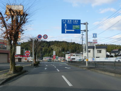 | 奥耶馬トンネルからは日田市に入り、緩やかな勾配を下って行く。R212・R496の串刺しおにぎりが設置されているが、これは中津市側には見られなかったものである。これは管轄する県の土木事務所の違いによるものと思われる。日田市側にも登坂車線が設置されているが、その延長は約2.4kmと結構な長さである。 | ||