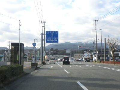 | やや急な勾配を上り右にカーブして上野橋を渡る。さらに勾配を上って緩やかな右カーブの先でR210・R212高瀬交差点に突き当たる。R496の終点はこの交差点である。R212は大分・阿蘇方面のR210と重複した後に分岐して阿蘇方面に向かう。前述の制限高4mの加々鶴トンネルは右折方向である。 | ||