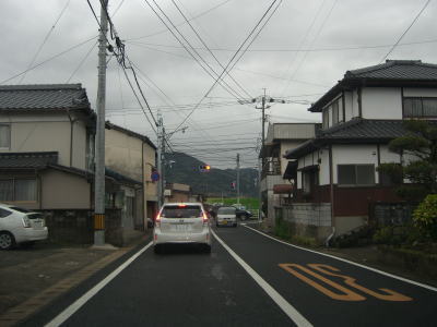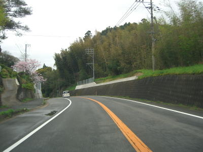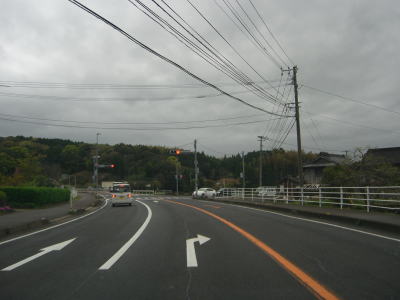 | 43.朝日町川上交差点からは交通量が激減 | 44.朝日小学校前交差点を道なりに右にカーブ | 45.朝日小学校前交差点以南は1.5車線狭路 |