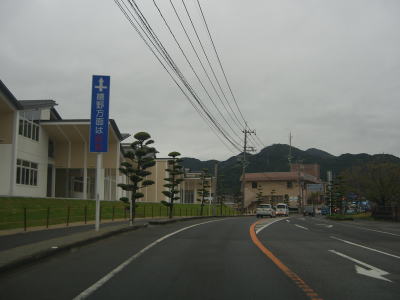 | 佐賀r324牛間田新堂交差点の周辺は道路両側に家屋が密集しているため多少狭苦しく感じるが、それ以外は見通しが良く走りやすい2車線道路である。八幡川を渡ると嬉野市の中心部に入り、塩田中学校の前を通過した先の佐賀r28嬉野市役所前交差点を左折する。 | ||