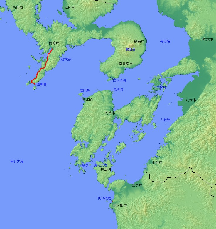 | 海上区間 | 長崎県長崎市(脇岬港)…鹿児島県阿久根市(阿久根港) |