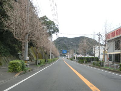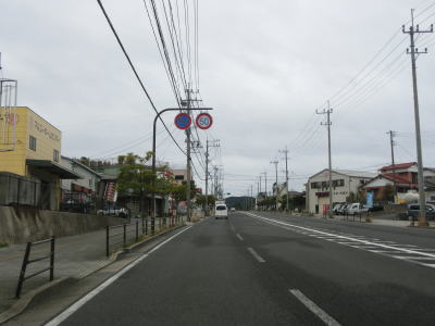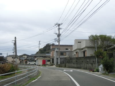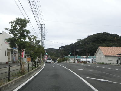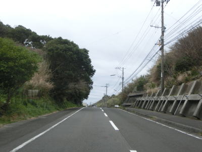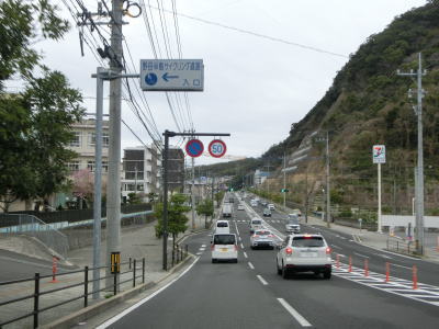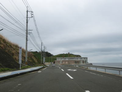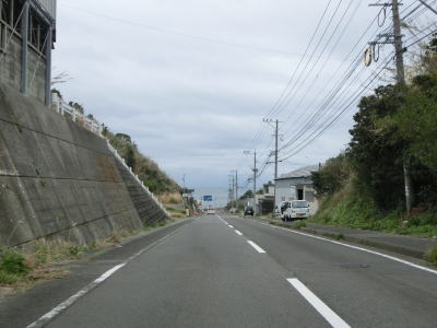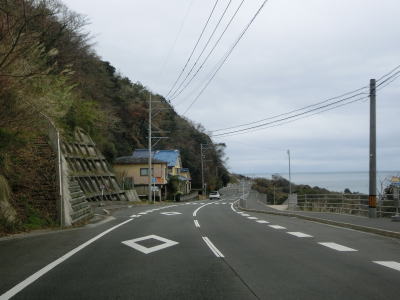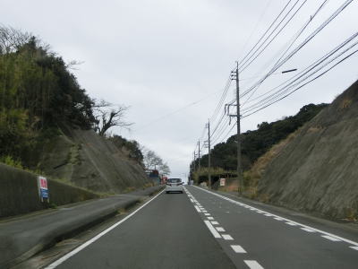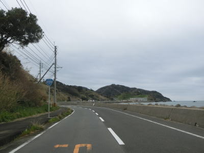 | 古里集落からは再び海岸線に沿って平坦な状態を走る。この辺りまで来ると交通量はだいぶ減っており快走する事ができる。長崎市恐竜博物館の前で左の急カーブを曲がると海岸線を離れて内陸部へと入る。 | ||