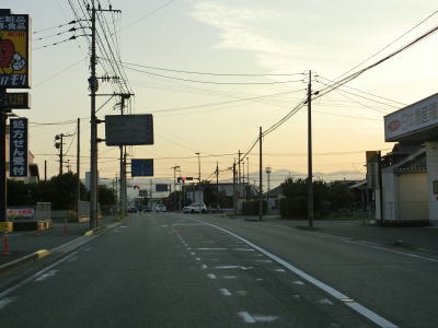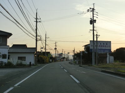 | 幡崎橋をくぐってすぐに前後にやや急な勾配のある東田橋を渡り、平坦になった後に越えて福岡県小郡市に入る。県境を挟んで家屋が連なっているため県境感は薄く、なぜか福岡県の境標識は設置されていない。 福岡県に入っても道路状況と風景に変化はなく狭い歩道の対面2車線道路が続く。早くも小郡市の中心部と言える場所に差し掛かって福岡r131小郡自衛隊入口交差点を通過する。 |