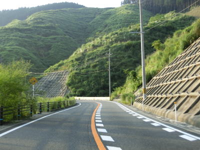 | 38.長谷山交差点からは単独区間 | 39.小石原川流域の平地を快走 | 40.松丸集落 |