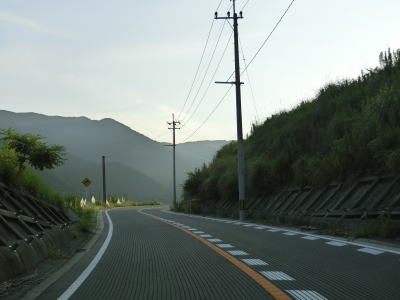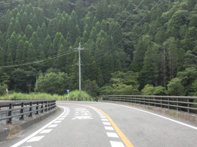 | 旧道が合流してからもセンターライン付きの2車線道路が続くが、約800mでセンターラインがなくなり道幅が狭くなる。と言っても強烈に狭い訳ではなく1.8車線幅程度は確保されている。勾配はほとんどないが蛇行する小石原川に沿っているため急カーブが多い。 | ||