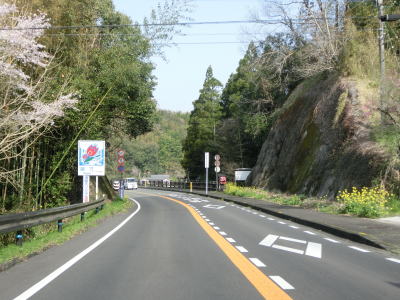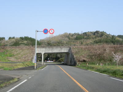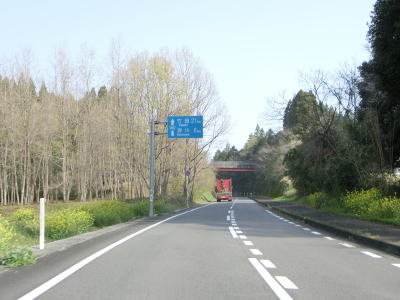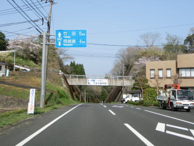 | 緩やかながら長い勾配を上る。カーブが多いが緩やかなものばかりなので走りやすい。富士諸井路という水路の橋(?)をくぐってからは下り勾配となる。左の急カーブの後に旧道との交差点を通過して右カーブを曲がり、新小田無トンネルの手前で竹田市に入る。境標識はトンネルの50m程手前に建てられているが、ウオッちず等では旧道が交差しているカーブ付近が市境と表記されている。 | ||