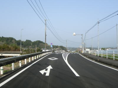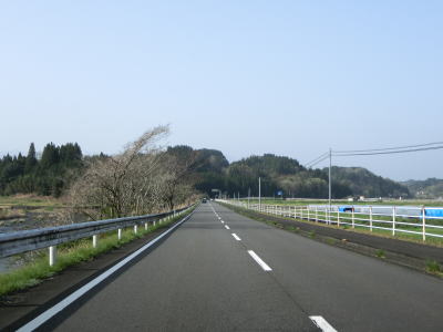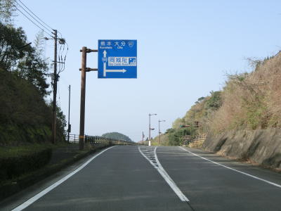 | 砂田交差点からもアップダウンのある2車線道路を走る。右カーブの先で大分r410との交差点を通過してからは緩やかな勾配を下り、左にカーブしている共栄橋を渡って旧緒方町に入る。 | ||