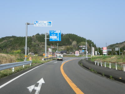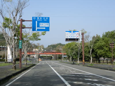 | 勾配がほぼ平坦になった所で清川駅前交差点を通過する。交差点の名称は“清川駅”だが正式な駅名は“豊後清川駅”である。左にカーブしてJR豊肥本線のトンネルの上を通過した後に道の駅「きよかわ」を通過する。道の駅の敷地の西端で大分r45砂田交差点を通過する。 | ||