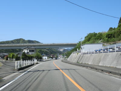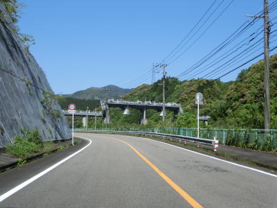 | その後は塩見川の流域を走る。勾配はほとんどなく緩やかなカーブばかりなので走りやすい道路状況である。塩見川のすぐ傍を走った後にE10東九州道の塩見川橋の下をくぐる。 | ||