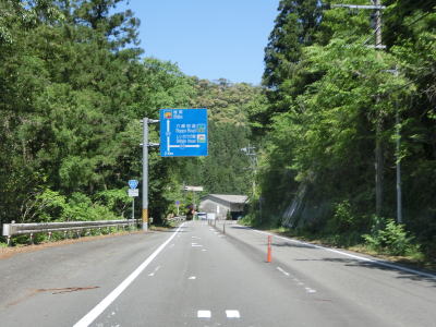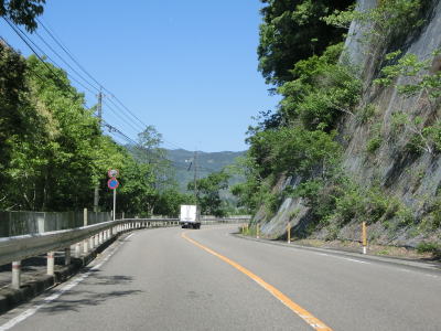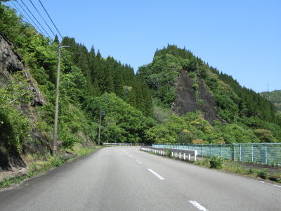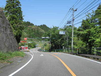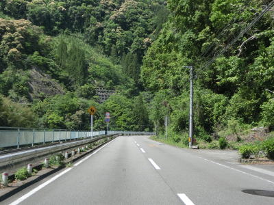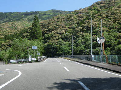 | 山須原集落を通過し、耳川沿いをさらに走っていると荒谷橋を渡って諸塚村に入る。橋を渡り終えた直後に左の急カーブを曲がり、以降は耳川の左岸を走る。これまでと変わらない川沿いの2車線快走路が続いている。 | ||