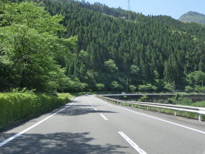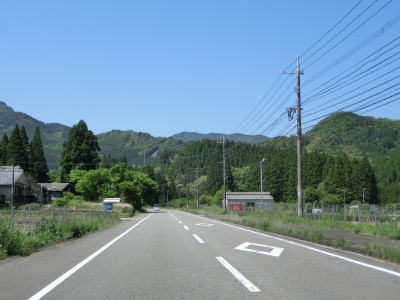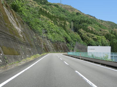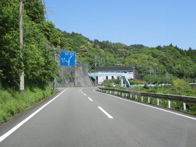 | ダム湖畔を走っていると徐々に水量が少なくなり普通の川に戻っていく。ダムの建設に伴って整備されたのかどうかは不明だが、緩やかな上り勾配の2車線快走路が続いている。小田集落を通過して勾配を下っていると町道101号との花水流交差点を通過する。左折して町道を進めば美郷町の中心部に行く事ができる。 | ||