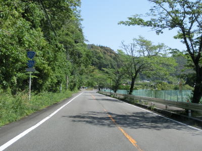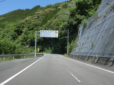 | 左カーブを曲がっていると宮崎r51中野原交差点を通過し、以降は耳川に沿って走る。山間部の河川に沿っているとは言え、急なカーブもなく走りやすい道路状況である。勾配も意識しなければわからない程度である。旧東郷町の中心部を通り抜けるが、道路状況はこれまでと変わらない2車線道路であり市街地だけ狭苦しいという事もない。 | ||