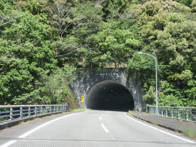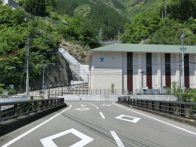 | 笹陰林道との交差点からも耳川に沿った快走路が続いている。左カーブを曲がった後に右にカーブして小八重トンネルをくぐる。トンネルの手前からは耳川が町村境となっており、対岸は諸塚村である。八重トンネルの旧道から対岸に行く橋があり、その先の小布所集落はある。耳川の右岸を走っていると山須原発電所の前を通過する。この辺りまで来るとダム湖から通常の河川に戻っている。 | ||