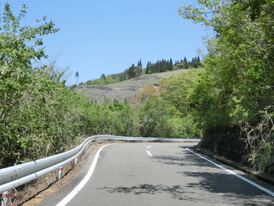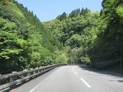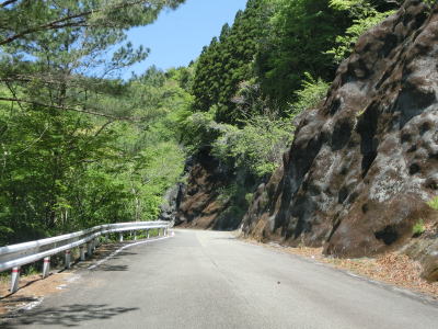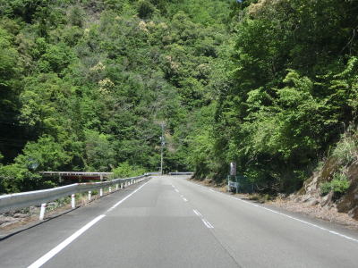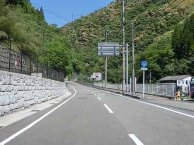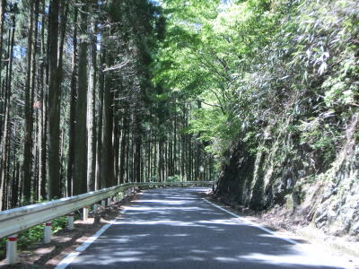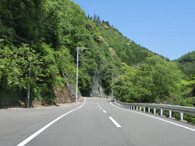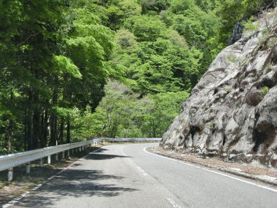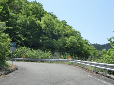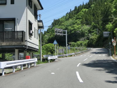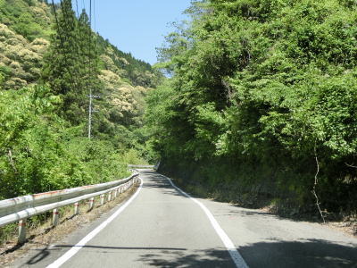 | 飯干集落を過ぎてからはそれまでに比べて勾配が急になるが、それでもまだ緩やかと言える範疇だろう。センターラインのない区間が多いものの1.8〜2.0車線程度の道幅があるため飯干集落以南よりも走りやすくなったと感じるかもしれない。 | ||