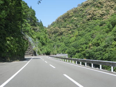 | 1.0〜1.5〜2車線幅と広狭が混在している状態を走るが、2車線区間は少なく1.5車線幅がメインである。勾配はさほど急ではないがカーブが多く見通しは良くない。交通量は少ないが皆無ではないので対向車の存在に気を遣わない訳にはいかない。 | ||