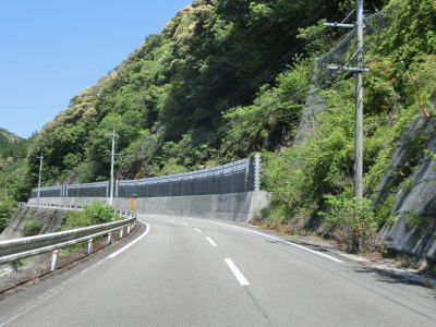 | 70.穂白尾集落への村道との交差点 | 71.川内奥畑林道との交差点 | 72.落石防止対策が施されていた |