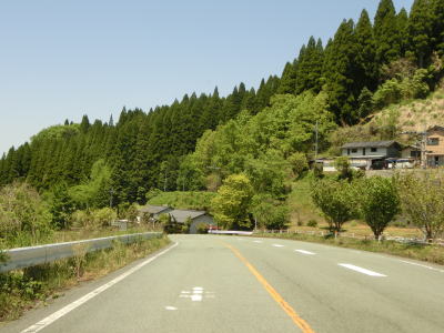 | 蘇望橋を渡ると熊本県山都町に入る。県境付近にも集落が存在しており人里離れた場所ではない。急カーブをいくつか通過するが、最後のカーブの前後の反対側車線には登坂車線が設置されている。 | ||