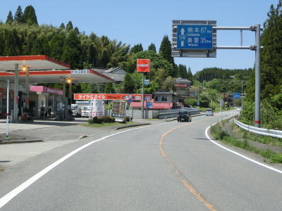 | 132.R218・R265・R327馬見原交差点 | 133.「熊本67km 美里35km」 | 134.R218・R265滝上交差点を右折 |
