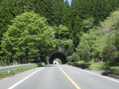 | 熊本r28交差点からは急なカーブがなくなるものの勾配はややきつくなる。内山トンネルと起雲山トンネルをくぐると一連のトンネル群が終わる。高森9号隧道から3号隧道まであったが、2号隧道と1号隧道は存在しない。トンネル群が終わっても下り勾配が続いており、阿蘇山を望みながら下って行く。 | ||