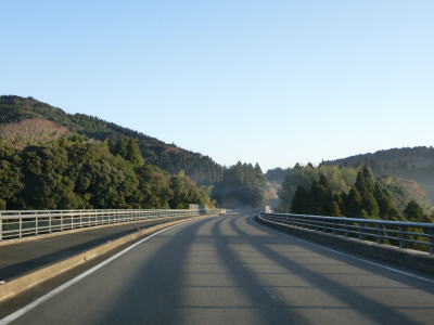| 旧道と合流してからもセンターライン付きの2車線道路が続いており、アップダウンを繰り返しながら北に向かって走る。勾配がややきつくなった後に高隈ダムの脇を通過するが、その辺りには登坂車線が設置されている。ダムの近くを通ってもそのまま高隈湖沿いとはならずに湖から離れて行く。 | ||
