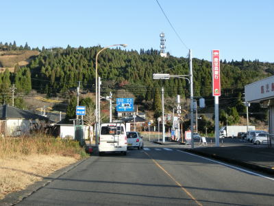 | 下り勾配が終わった所で鹿児島r64交差点を左にカーブして通過し、以降は上り勾配となる。右にカーブして堂篭川から離れてさらに勾配を上っていると旧輝北町の中心部に差し掛かり沿線の家屋が増える。 | ||