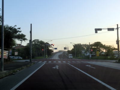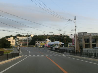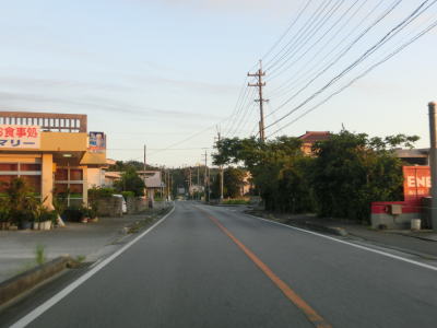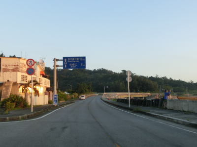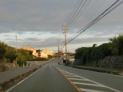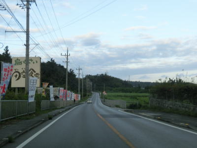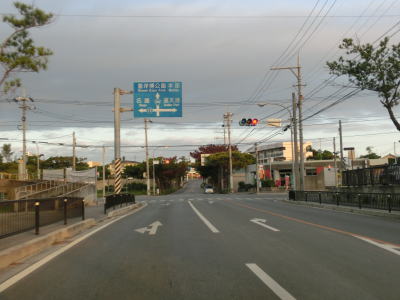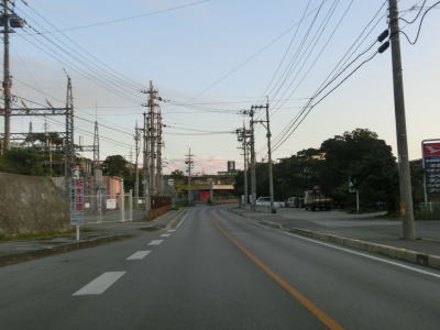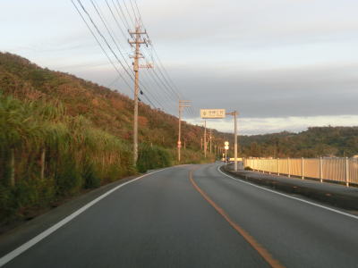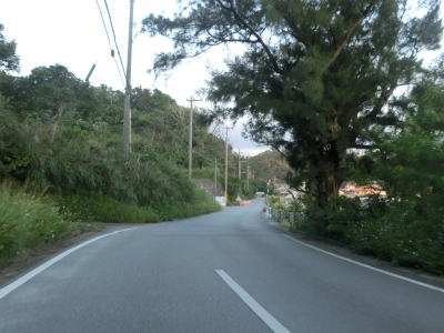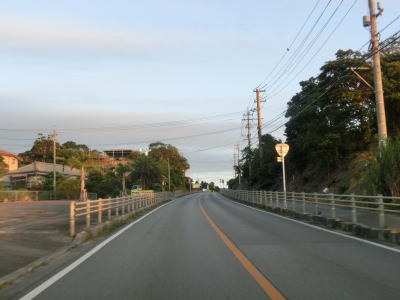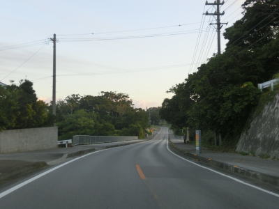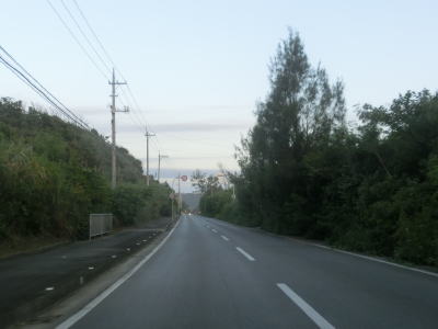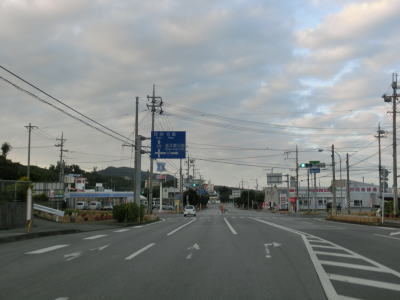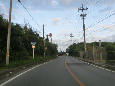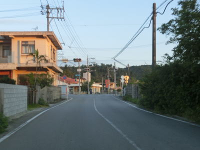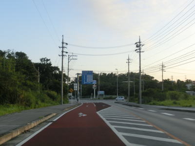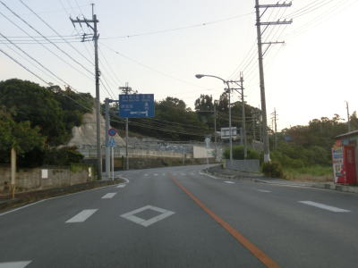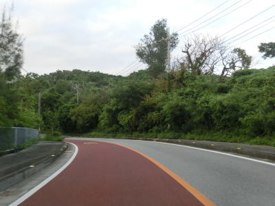| 海沿いに快走路を走っていると今帰仁村に入る。しばらくは海沿いを走るが、羽地内海の西端に面する我部井集落からは海岸線から離れて内陸に進む。沖縄r123交差点付近に来ると道路上から海を見る事ができなくなる。 | ||
