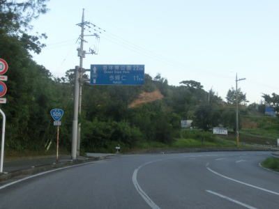 | 本部町に入ってからも道路状況と周辺の風景に特に変化はなく緩やかなアップダウンと緩やかなカーブを繰り返す2車線快走路を走る。沖縄r114具志堅西交差点を通過するが、仲尾次北交差点付近の案内標識に表記されていた海洋博公園へは右折してr114へ進む。なお、海洋博公園は美ら海水族館を含む施設を指している。一般的な観光客には美ら海水族館の方の知名度が高いように思える。 | ||