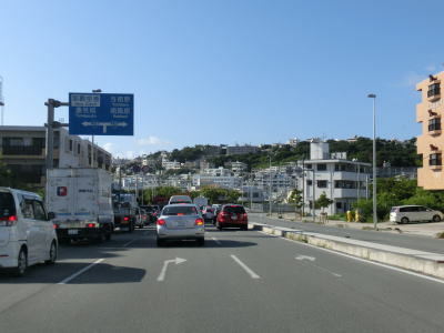 | つかざんトンネル以北はバイパスの開通に伴って造成されたと思われる場所を通過する。沿線には商業施設も多く比較的新しい建物が多い。緩やかな勾配を下っていると那覇市に入り、直後にR329との交差点に突き当たる。R329とR507現道との交差点が左折方向にあるのだが、ここは一旦与那原・南風原方面に右折する。 | ||